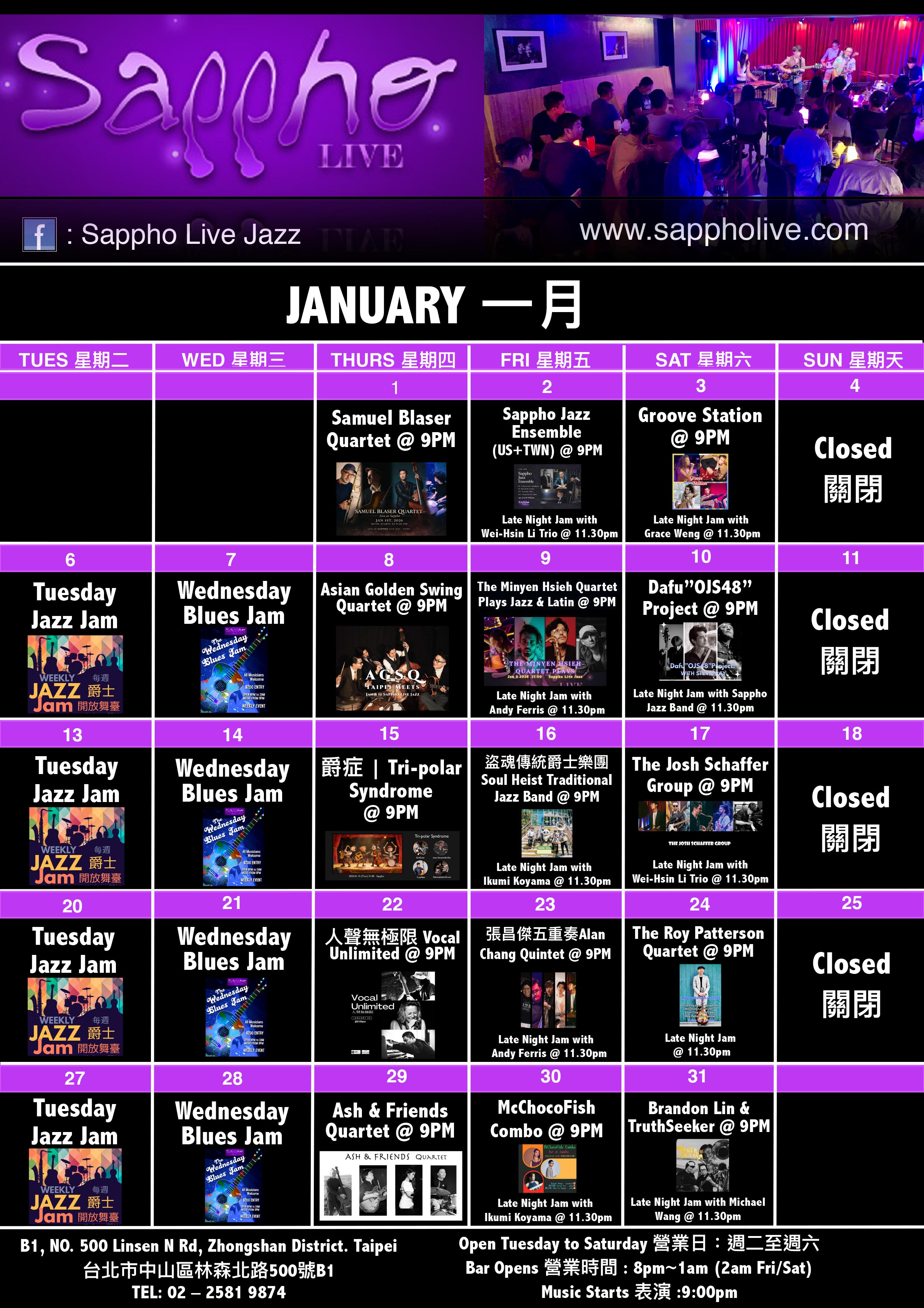 Woo Jazz Quartet 吳沛軒爵士四重奏 + Late Night Jam Hosted by Michael Wang Trio
